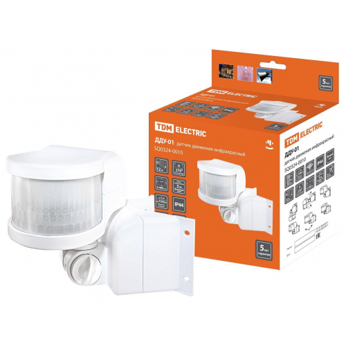 TDM_SQ0324-0010_Датчик движения угловой ДДУ-01 1100Вт, 5-480с, 12м, 5+Лк, 270гр, IP44, TDM