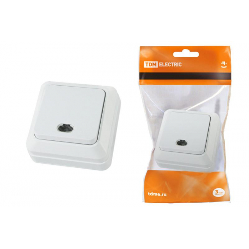 TDM_SQ1801-0009_Выключатель 1-кл. открытой установки с подсветкой IP20 10А, белый "Ладога" TDM