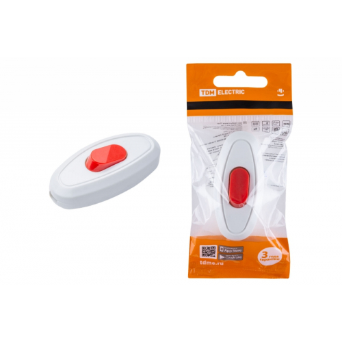 TDM_SQ1806-0221_Выключатель на шнур 6А 250В белый с красной кнопкой TDM_цена за шт