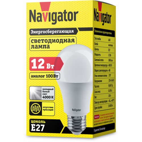 NAV_19102_Лампа светодиодная LED 12вт E27 белый Navigator 71 297 NLL-A60-12-230-4K-E27